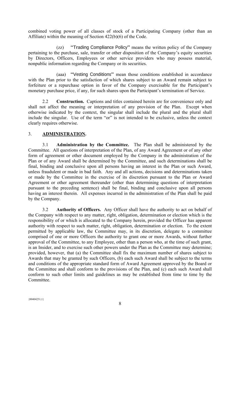 | ** | Certain portions of this agreement have been omitted in accordance with Item 601(b)(10) of Regulation S-K. A copy of any omitted portion will be furnished to the Securities and Exchange Commission upon request. The location of the redacted confidential information is indicated in the exhibit as “[redacted]”. |