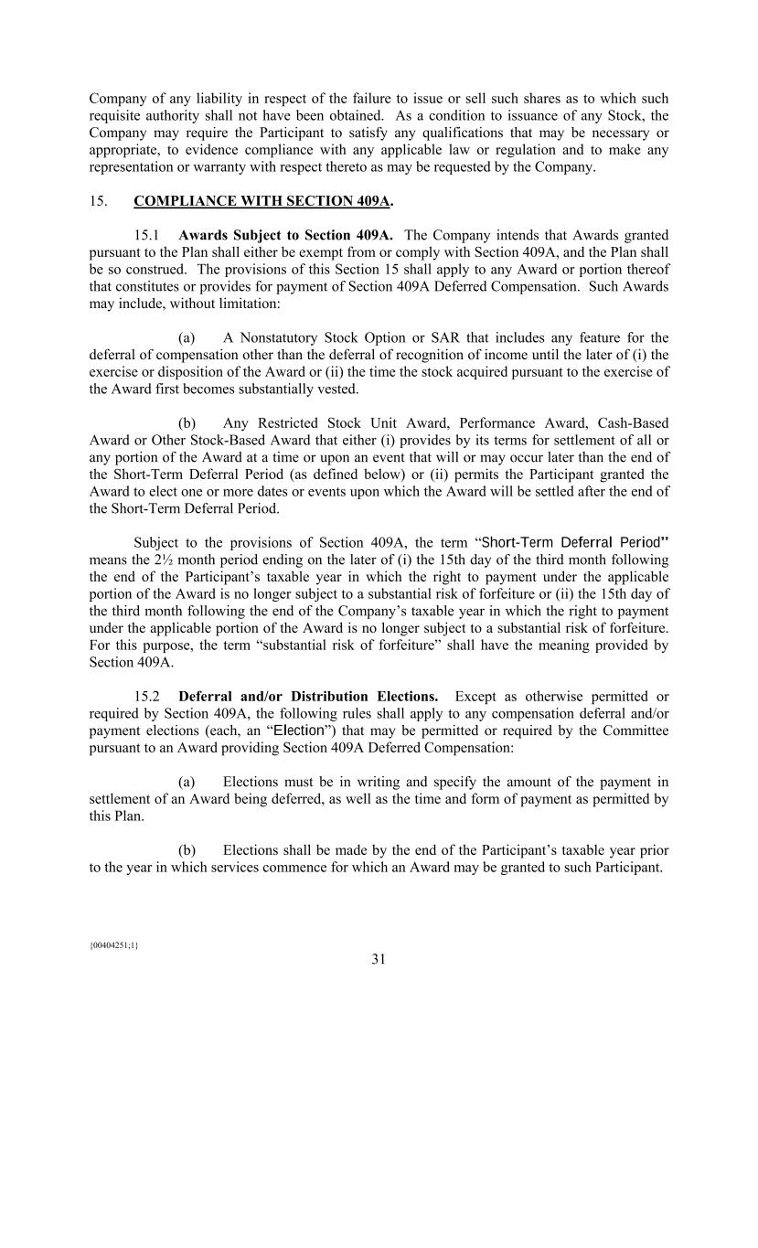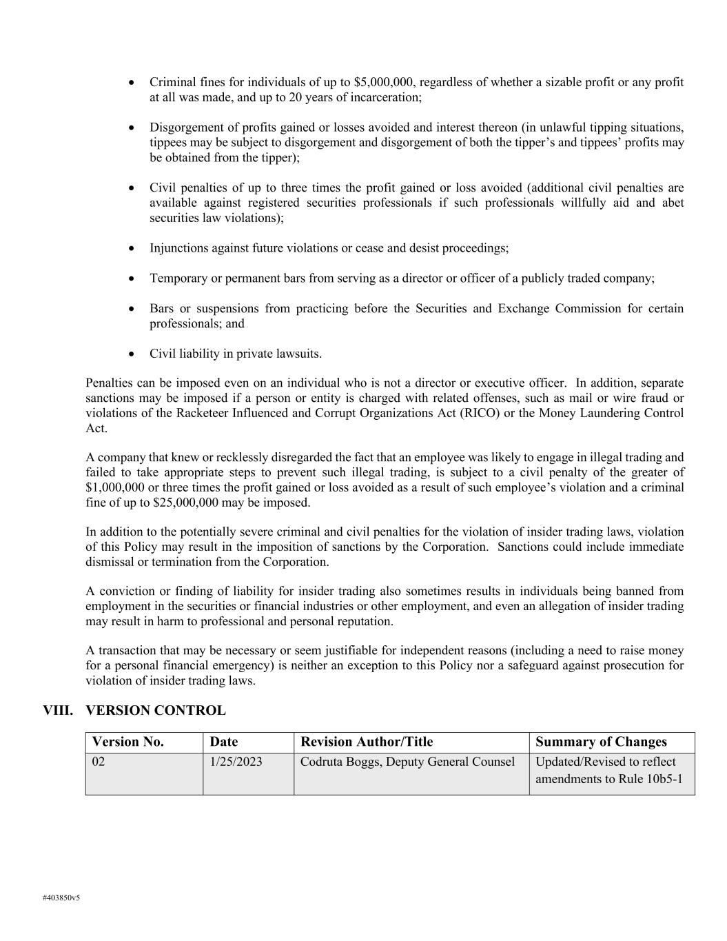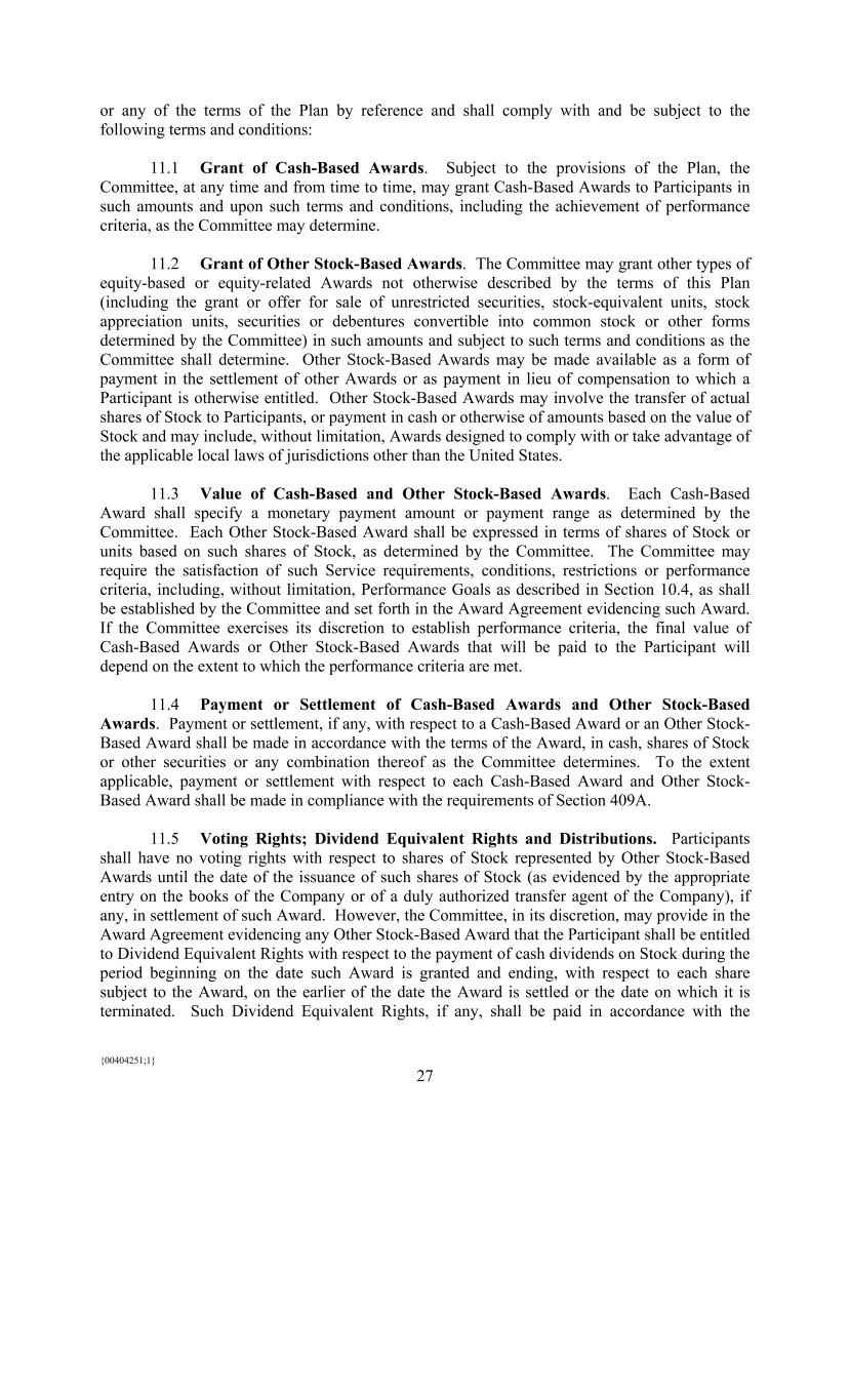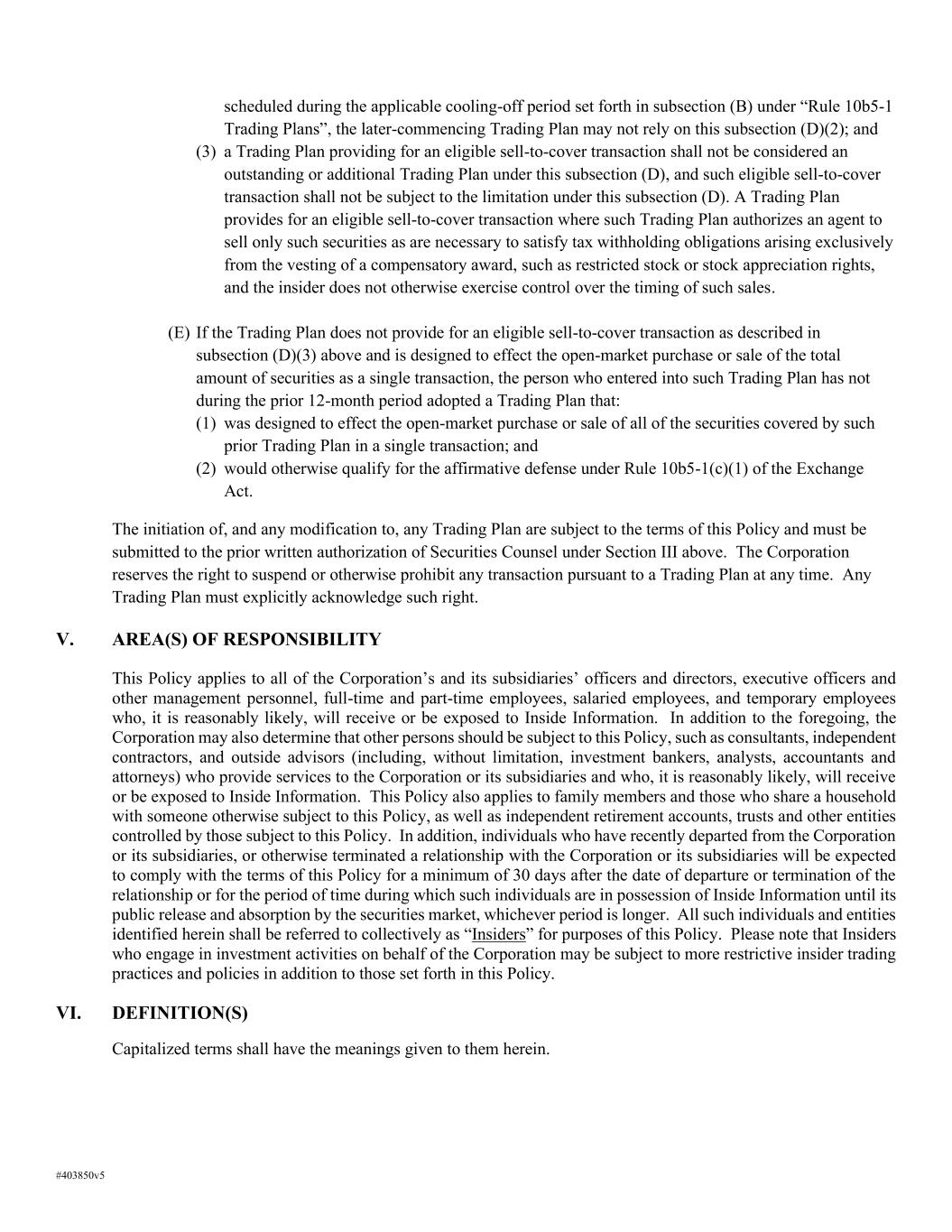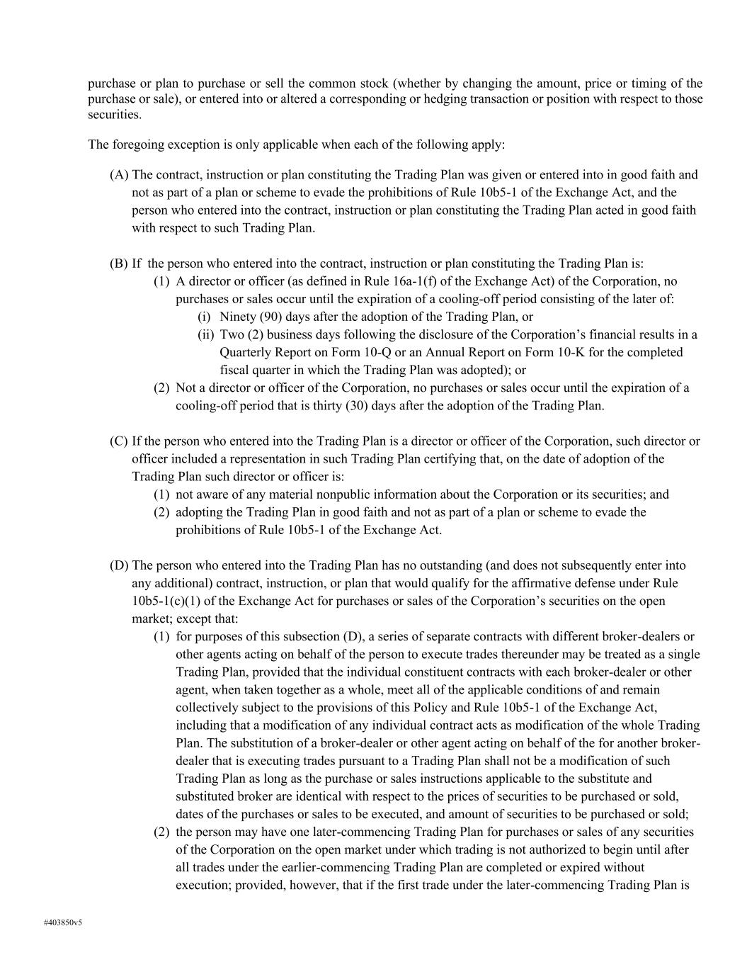 The agreements included or incorporated by reference as exhibits to this Form 10-K may contain representations and warranties by each of the parties to the applicable agreement. These representations and warranties were made solely for the benefit of the other parties to the applicable agreement and (i) were not intended to be treated as categorical statements of fact, but rather as a way of allocating the risk to one of the parties if those statements prove to be inaccurate; (ii) may have been qualified in such agreement by disclosures that were made to the other party in connection with the negotiation of the applicable agreement; (iii) may apply contract standards of “materiality” that are different from “materiality” under the applicable securities laws; and (iv) were made only as of the date of the applicable agreement or such other date or dates as may be specified in the agreement. The Company acknowledges that, notwithstanding the inclusion of the foregoing cautionary statements, it is responsible for considering whether additional specific disclosures of material information regarding material contractual provisions are required to make the statements in this Form 10-K not misleading.
