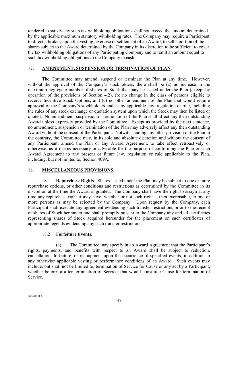 | *10.18 | | | | Filed as Exhibit 10.1 to registrant’s Form 8-K filed August 20, 2024 |